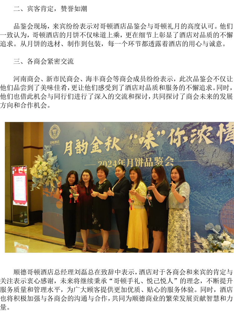 哥頓酒店月餅品鑒會暨客戶答謝會圓滿成功