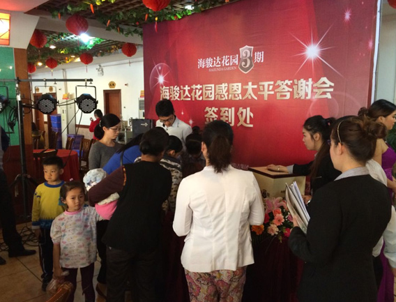 11月23日, 梧州海駿達(dá)花園舉行太平業(yè)主答謝會(huì)?;顒?dòng)邀請(qǐng)了太平的部分業(yè)主、誠(chéng)意客戶(hù)、商會(huì)人士及村鎮(zhèn)府領(lǐng)導(dǎo)親臨現(xiàn)場(chǎng)?,F(xiàn)場(chǎng)人氣火爆,認(rèn)購(gòu)積極?,F(xiàn)場(chǎng)不少客戶(hù)都帶上親朋好友親臨,主動(dòng)咨詢(xún)項(xiàng)目信息,并一同購(gòu)買(mǎi)。當(dāng)天還有精彩表演和家電大抽獎(jiǎng),為答謝會(huì)增添了不少樂(lè)趣及熱情。